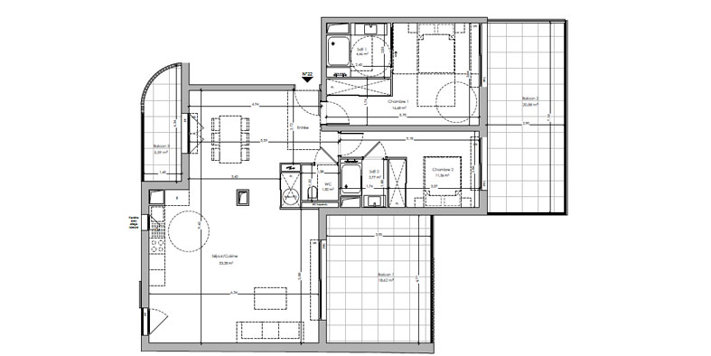 Het nieuwbouwproject valt op door zijn moderne, zuivere lijnen en verfijnde uitstraling. De gevels tonen een harmonieuze mix van hoogwaardige materialen, passend bij het prestigieuze stadsbeeld. Het ontwerp zet in op veel natuurlijk licht en ruime volumes, waardoor elk appartement een warme, uitnodigende sfeer krijgt. Elk woonruimte is zorgvuldig uitgewerkt om comfort en hedendaags wonen te garanderen, volledig afgestemd op de levensstijl van Cannes.