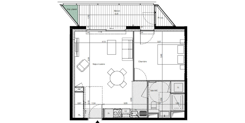 Het gebouw valt op door zijn grafische, strakke lijnen die harmonieus aansluiten bij de Écovallée. Panoramische uitzichten, luchtige daktuinen en gedeelde terrassen op het dak geven de residentie een unieke en verfijnde charme.